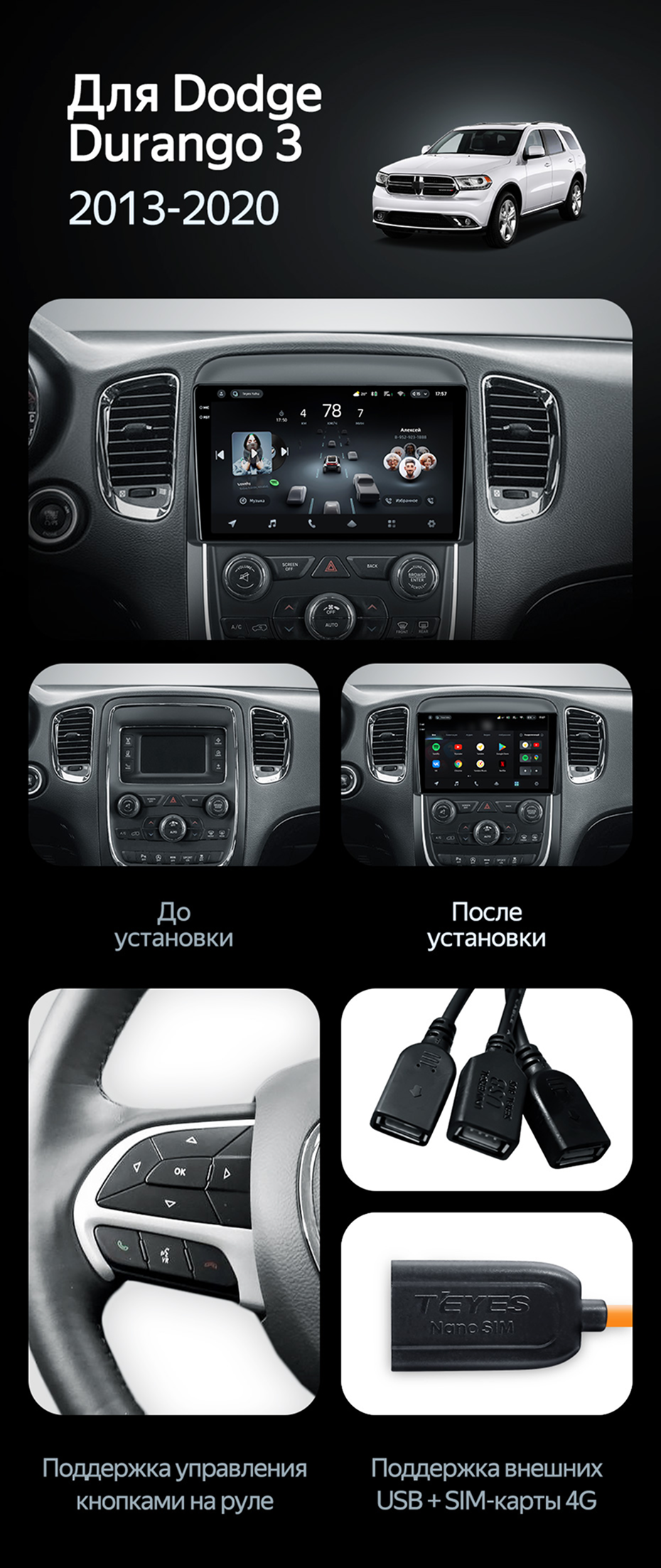 Переходная рамка Dodge Durango 3 (2013-2020) (9") - купить всего за 7 200 руб. в интернет-магазине в Астрахани Teyes.com.ru. ✓ Самый лучший выбор мультимедиа ✓ Лучшая замена штатному ГУ ✓ Тел. +7 (800) 775-31-74