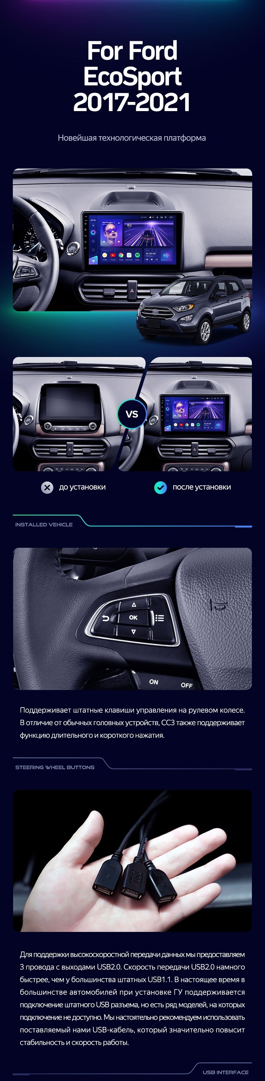 Штатная магнитола Teyes CC3 2K 4/32 Ford EcoSport (2017-2021) - купить всего за 39 450 руб. в интернет-магазине в Астрахани Teyes.com.ru. ✓ Самый лучший выбор мультимедиа ✓ Лучшая замена штатному ГУ ✓ Тел. +7 (800) 775-31-74
