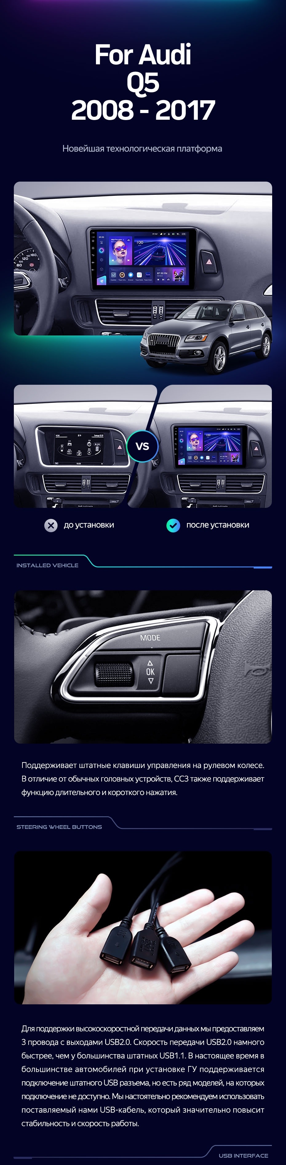 Штатная магнитола Teyes CC3 2K 360 6/128 Audi Q5 8R (2008-2017) Тип-A (13") - купить всего за 54 040 руб. в интернет-магазине в Астрахани Teyes.com.ru. ✓ Самый лучший выбор мультимедиа ✓ Лучшая замена штатному ГУ ✓ Тел. +7 (800) 775-31-74