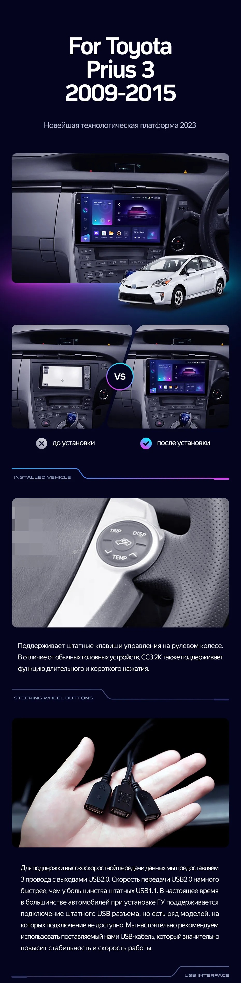 Штатная магнитола Teyes CC3 2K - это полноценное удовольствие от комфортного использования оборудования, с возможностью интеллектуальной поддержки авто.