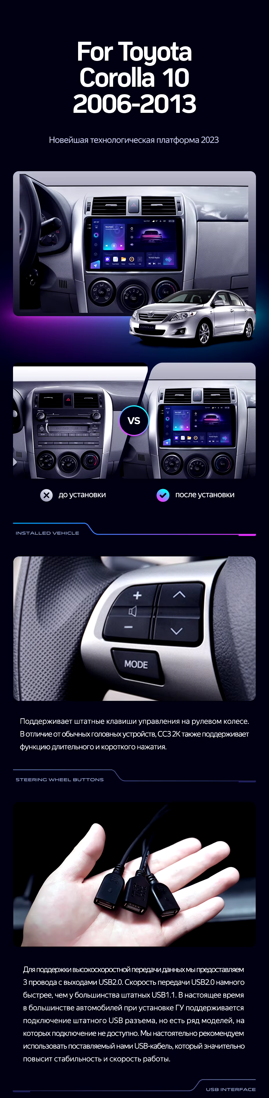 Штатная магнитола Teyes CC3 2K 6/128 Toyota Corolla 10 E140 E150 (2006-2013) Тип-B (13") - купить всего за 46 560 руб. в интернет-магазине в Астрахани Teyes.com.ru. ✓ Самый лучший выбор мультимедиа ✓ Лучшая замена штатному ГУ ✓ Тел. +7 (800) 775-31-74