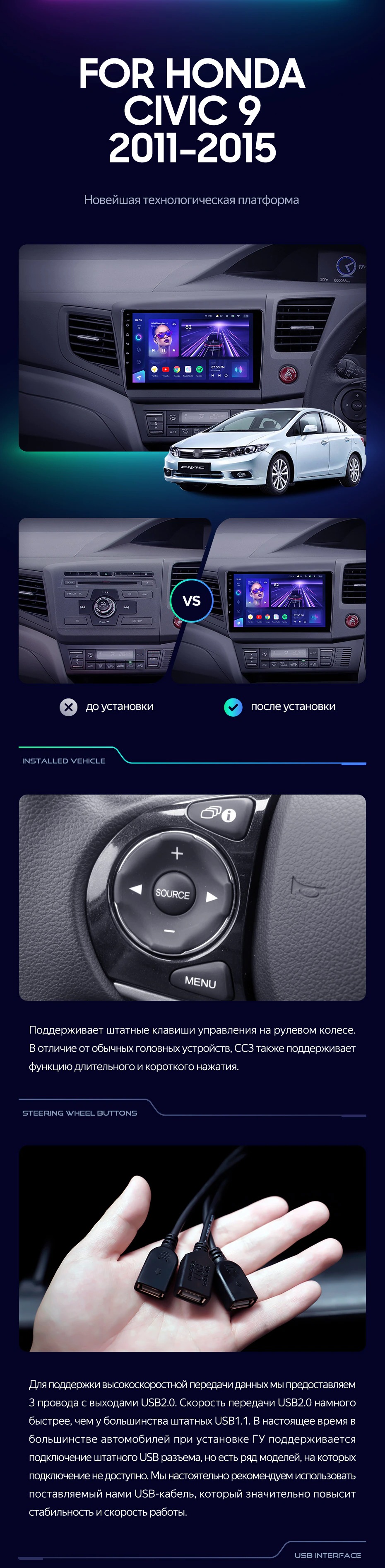 Штатная магнитола Teyes CC3 4/32 Honda Civic 9 FB FK FD (2011-2015) - купить всего за 33 330 руб. в интернет-магазине в Астрахани Teyes.com.ru. ✓ Самый лучший выбор мультимедиа ✓ Лучшая замена штатному ГУ ✓ Тел. +7 (800) 775-31-74