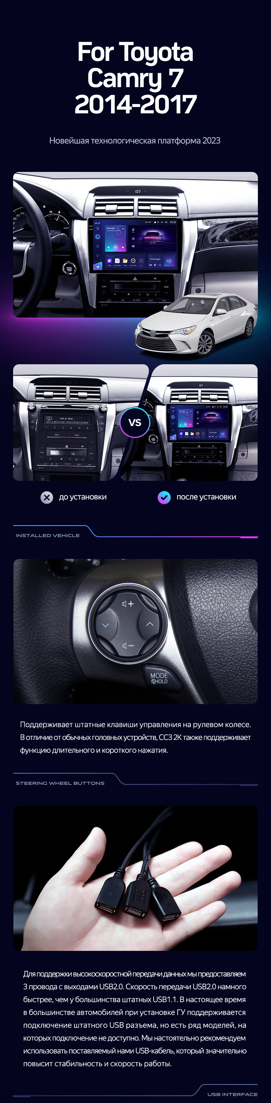 Штатная магнитола Teyes CC3 4/32 Toyota Camry 7 XV 50 55 (2014-2017) F4 - купить всего за 32 700 руб. в интернет-магазине в Астрахани Teyes.com.ru. ✓ Самый лучший выбор мультимедиа ✓ Лучшая замена штатному ГУ ✓ Тел. +7 (800) 775-31-74