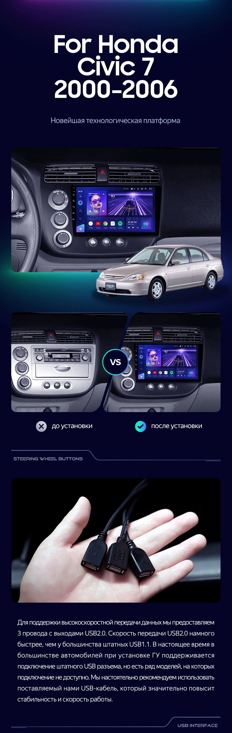 Штатная магнитола Teyes CC3L 4/32 Honda Civic 7 (2000-2006) F1 - купить всего за 28 500 руб. в интернет-магазине в Астрахани Teyes.com.ru. ✓ Самый лучший выбор мультимедиа ✓ Лучшая замена штатному ГУ ✓ Тел. +7 (800) 775-31-74