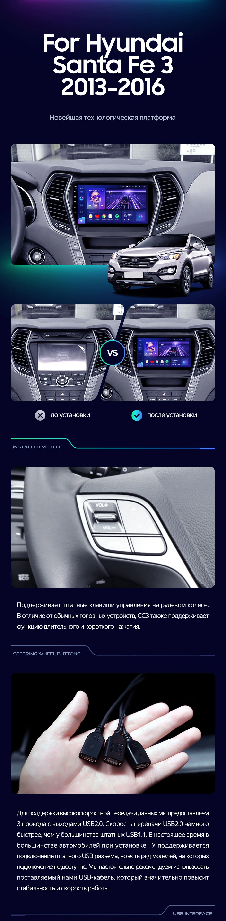 Штатная магнитола Teyes CC3L 4/32 Hyundai Santa Fe 3 (2013-2016) Тип-B - купить всего за 29 500 руб. в интернет-магазине в Астрахани Teyes.com.ru. ✓ Самый лучший выбор мультимедиа ✓ Лучшая замена штатному ГУ ✓ Тел. +7 (800) 775-31-74