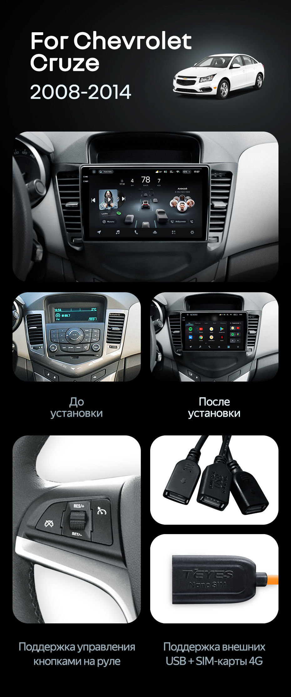 Штатная магнитола Teyes CC4 6/64 Chevrolet Cruze J300 (2008-2014) - купить всего за 44 100 руб. в интернет-магазине в Астрахани Teyes.com.ru. ✓ Самый лучший выбор мультимедиа ✓ Лучшая замена штатному ГУ ✓ Тел. +7 (800) 775-31-74