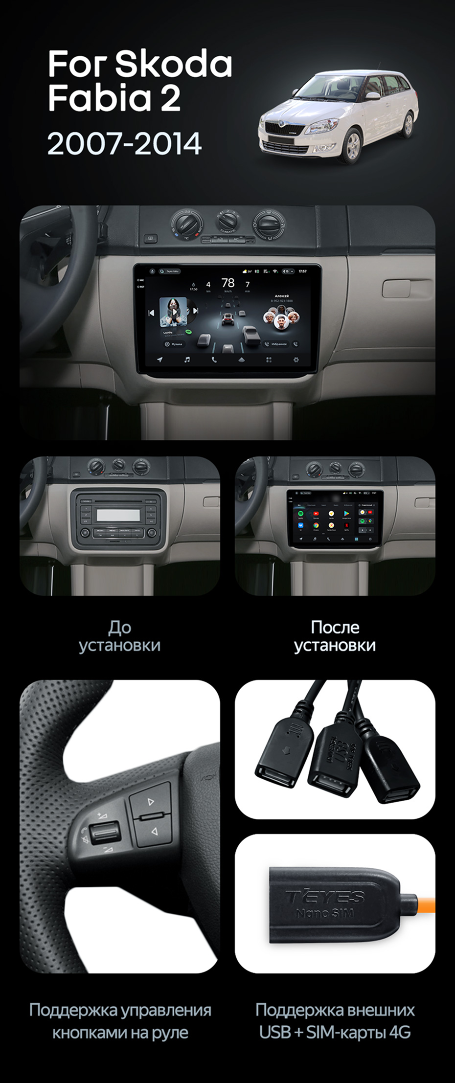 Штатная магнитола Teyes CC4 8/128 Skoda Fabia 2 (2007-2014) - купить всего за 53 000 руб. в интернет-магазине в Астрахани Teyes.com.ru. ✓ Самый лучший выбор мультимедиа ✓ Лучшая замена штатному ГУ ✓ Тел. +7 (800) 775-31-74