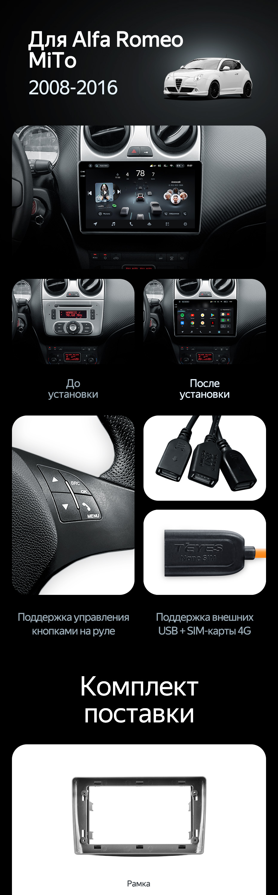 Штатная магнитола Teyes CC4 Pro 12/256 Alfa Romeo MiTo 955 (2008-2016) - купить всего за 72 300 руб. в интернет-магазине в Астрахани Teyes.com.ru. ✓ Самый лучший выбор мультимедиа ✓ Лучшая замена штатному ГУ ✓ Тел. +7 (800) 775-31-74