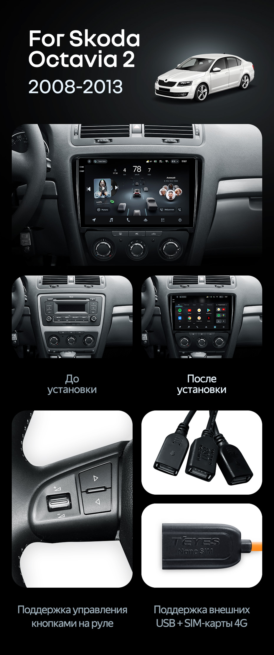 Штатная магнитола Teyes CC4 Pro 12/256 Skoda Octavia 2 A5 (2008-2013) - купить всего за 70 080 руб. в интернет-магазине в Астрахани Teyes.com.ru. ✓ Самый лучший выбор мультимедиа ✓ Лучшая замена штатному ГУ ✓ Тел. +7 (800) 775-31-74