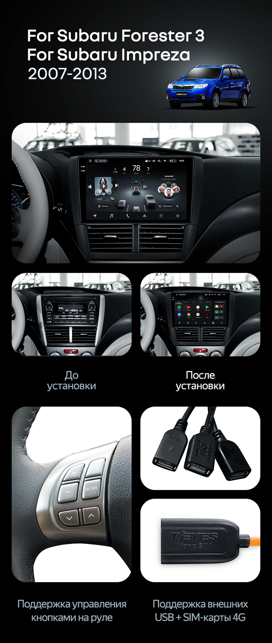 Штатная магнитола Teyes CC4 Pro 12/256 Subaru Forester 3 SH (2007-2013) - купить всего за 69 200 руб. в интернет-магазине в Астрахани Teyes.com.ru. ✓ Самый лучший выбор мультимедиа ✓ Лучшая замена штатному ГУ ✓ Тел. +7 (800) 775-31-74