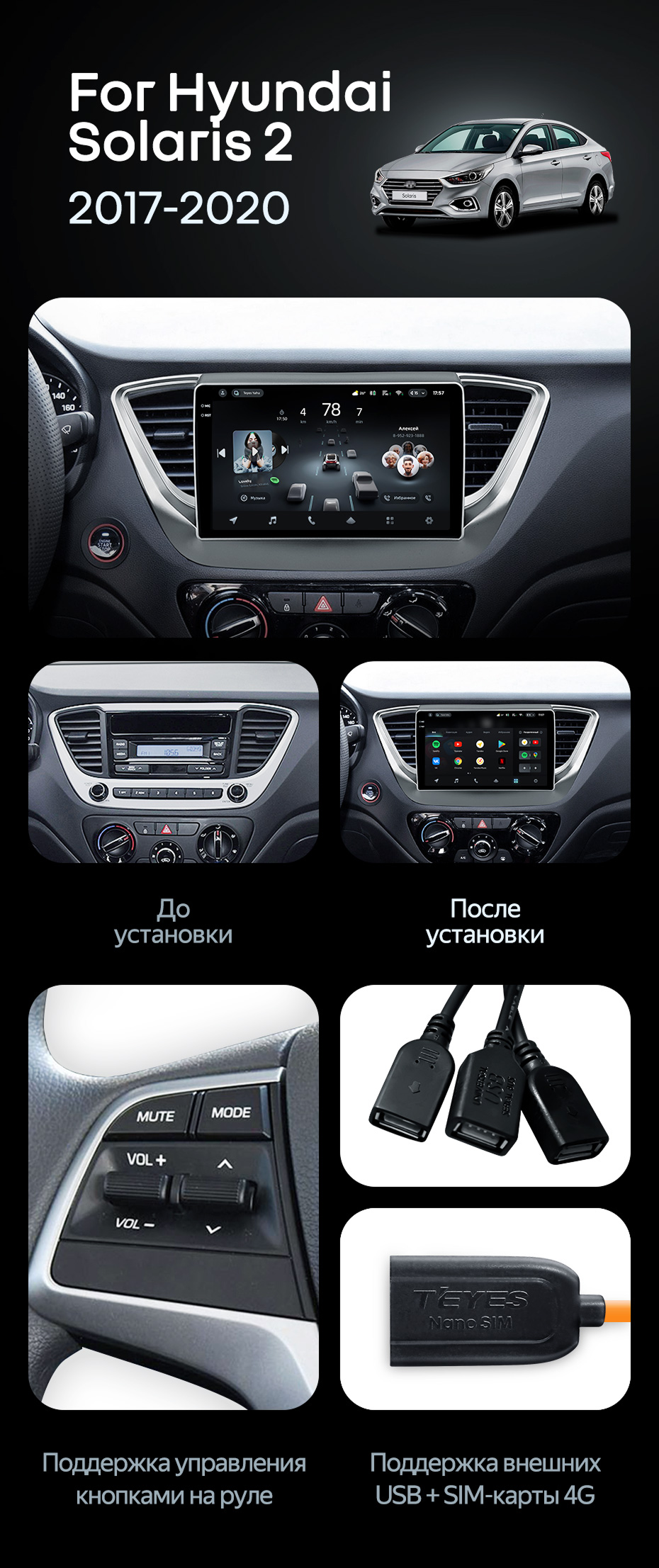 Штатная магнитола Teyes CC4 Pro 8/128 Hyundai Solaris 2 (2017-2020) F1 Тип-A - купить всего за 57 980 руб. в интернет-магазине в Астрахани Teyes.com.ru. ✓ Самый лучший выбор мультимедиа ✓ Лучшая замена штатному ГУ ✓ Тел. +7 (800) 775-31-74