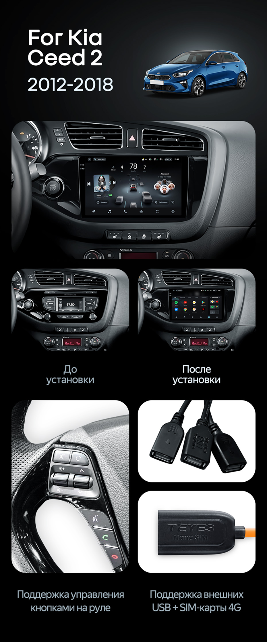 Штатная магнитола Teyes CC4 Pro 8/128 Kia Ceed 2 JD (2012-2018) (11") - купить всего за 63 320 руб. в интернет-магазине в Астрахани Teyes.com.ru. ✓ Самый лучший выбор мультимедиа ✓ Лучшая замена штатному ГУ ✓ Тел. +7 (800) 775-31-74