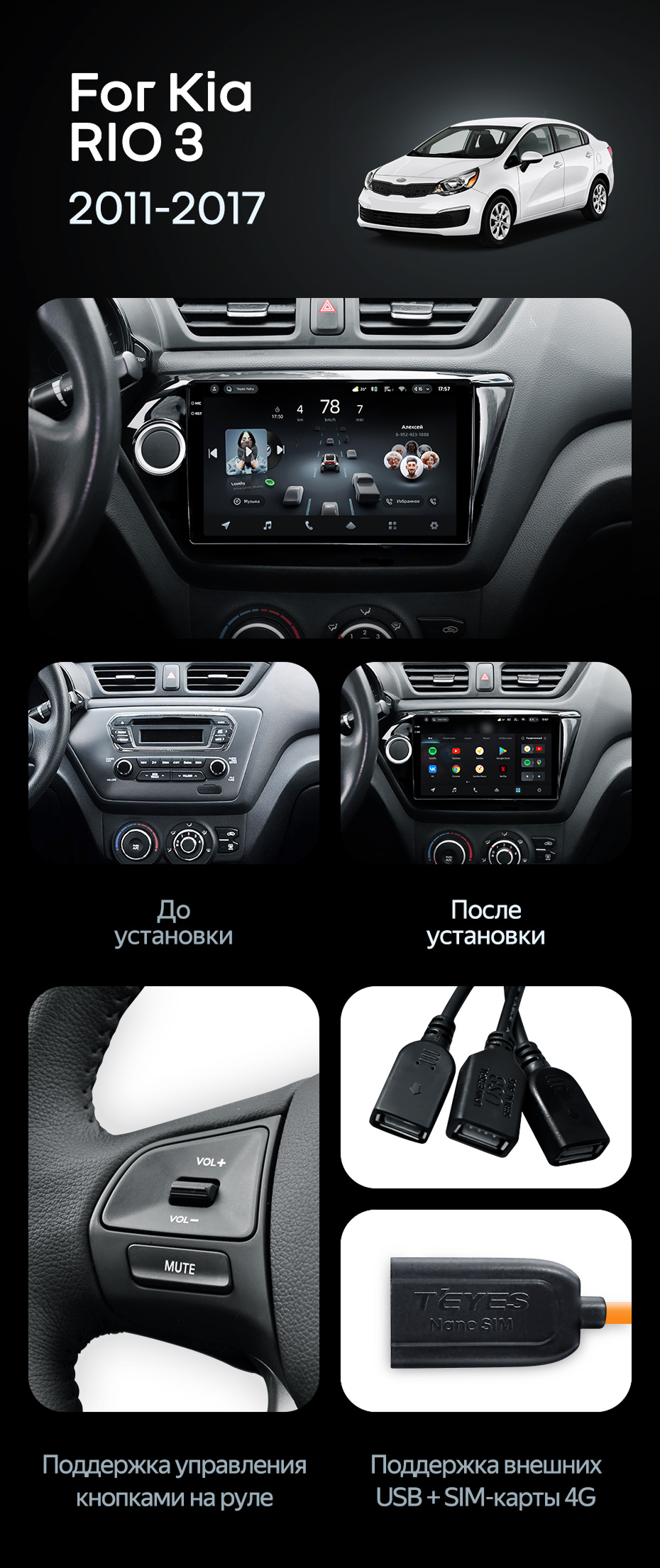 Штатная магнитола Teyes CC4 Pro 8/128 Kia Rio 3 (2011-2017) (13") - купить всего за 65 770 руб. в интернет-магазине в Астрахани Teyes.com.ru. ✓ Самый лучший выбор мультимедиа ✓ Лучшая замена штатному ГУ ✓ Тел. +7 (800) 775-31-74