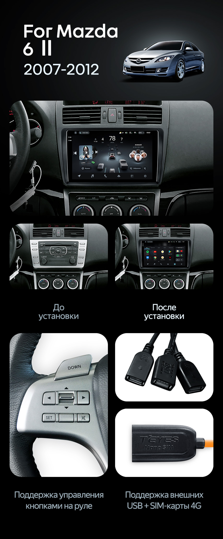 Штатная магнитола Teyes CC4 Pro 8/128 Mazda 6 2 GH (2007-2012) - купить всего за 58 380 руб. в интернет-магазине в Астрахани Teyes.com.ru. ✓ Самый лучший выбор мультимедиа ✓ Лучшая замена штатному ГУ ✓ Тел. +7 (800) 775-31-74