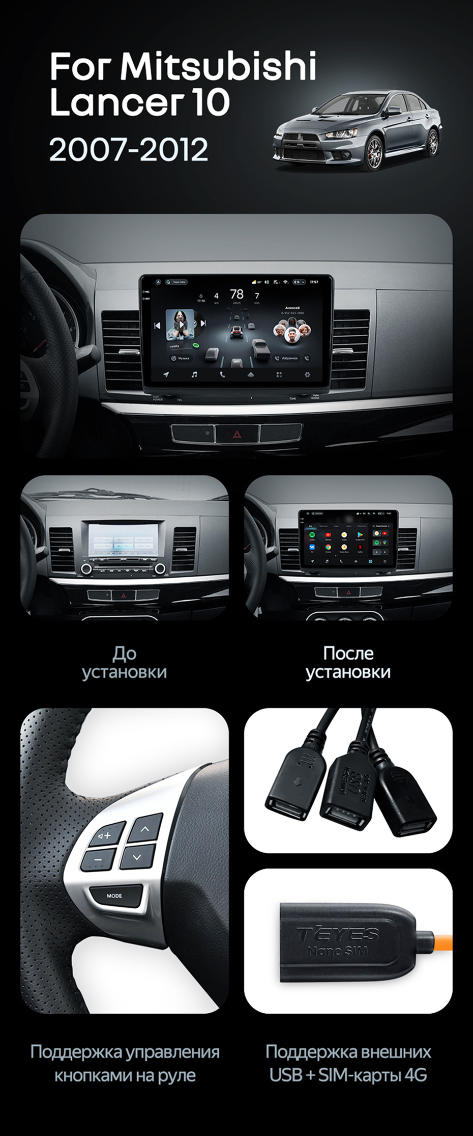 Штатная магнитола Teyes CC4 Pro 8/128 Mitsubishi Lancer 10 CY (2007-2012) Тип-A - купить всего за 57 820 руб. в интернет-магазине в Астрахани Teyes.com.ru. ✓ Самый лучший выбор мультимедиа ✓ Лучшая замена штатному ГУ ✓ Тел. +7 (800) 775-31-74