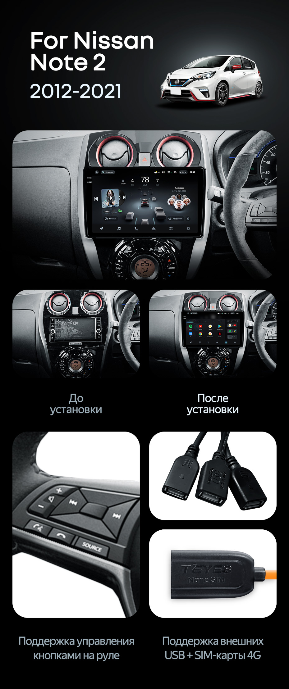 Штатная магнитола Teyes CC4 Pro 8/128 Nissan Note 2 E12 (2012-2021) - купить всего за 58 270 руб. в интернет-магазине в Астрахани Teyes.com.ru. ✓ Самый лучший выбор мультимедиа ✓ Лучшая замена штатному ГУ ✓ Тел. +7 (800) 775-31-74
