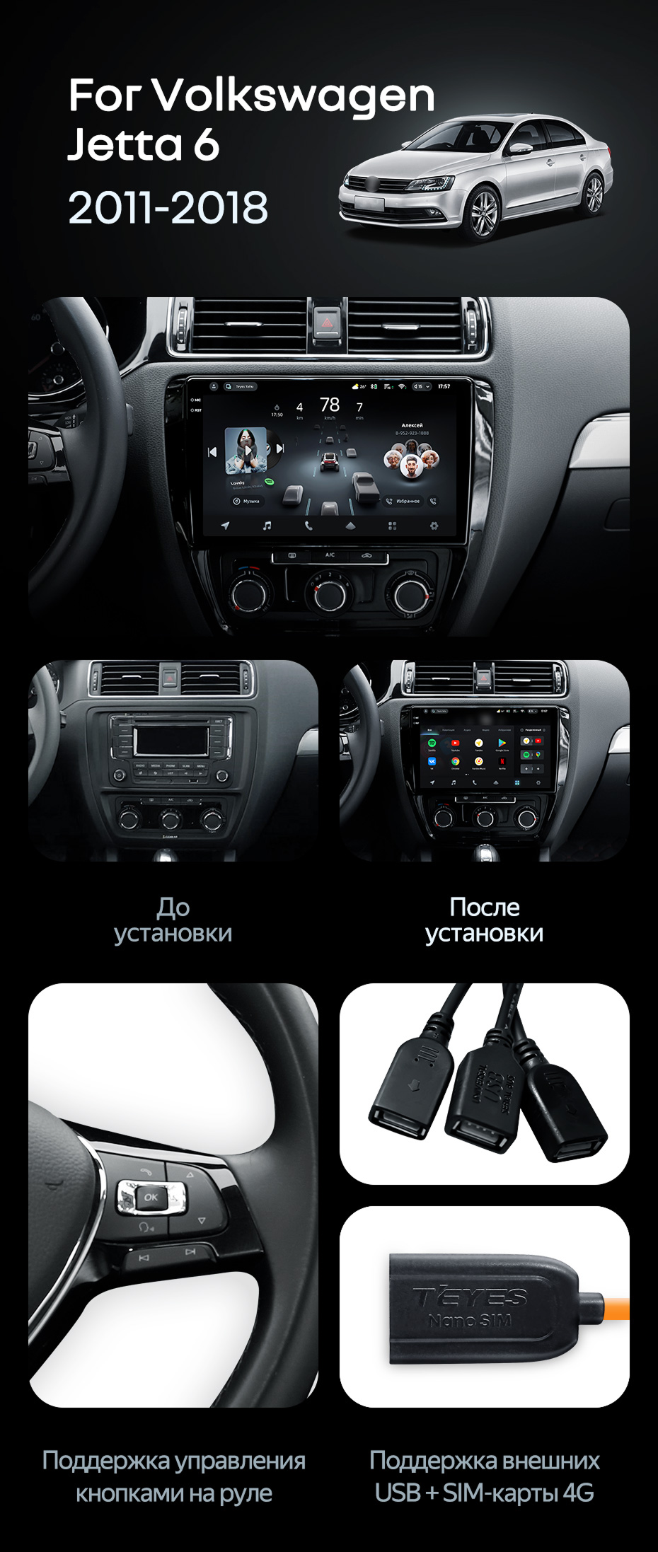 Штатная магнитола Teyes CC4 Pro 8/128 Volkswagen Jetta 6 (2011-2018) - купить всего за 58 350 руб. в интернет-магазине в Астрахани Teyes.com.ru. ✓ Самый лучший выбор мультимедиа ✓ Лучшая замена штатному ГУ ✓ Тел. +7 (800) 775-31-74