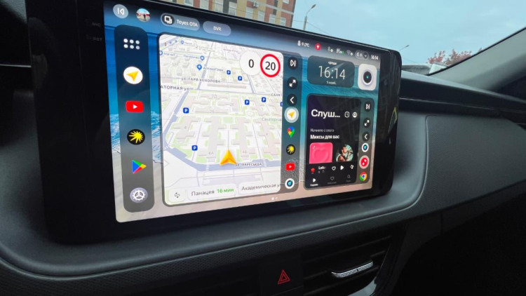 Большой сенсорный экран удобен для навигации, мультимедиа и управления функциями автомобиля. Поддерживается подключение камер, интернета 4G и дополнительных аксессуаров.