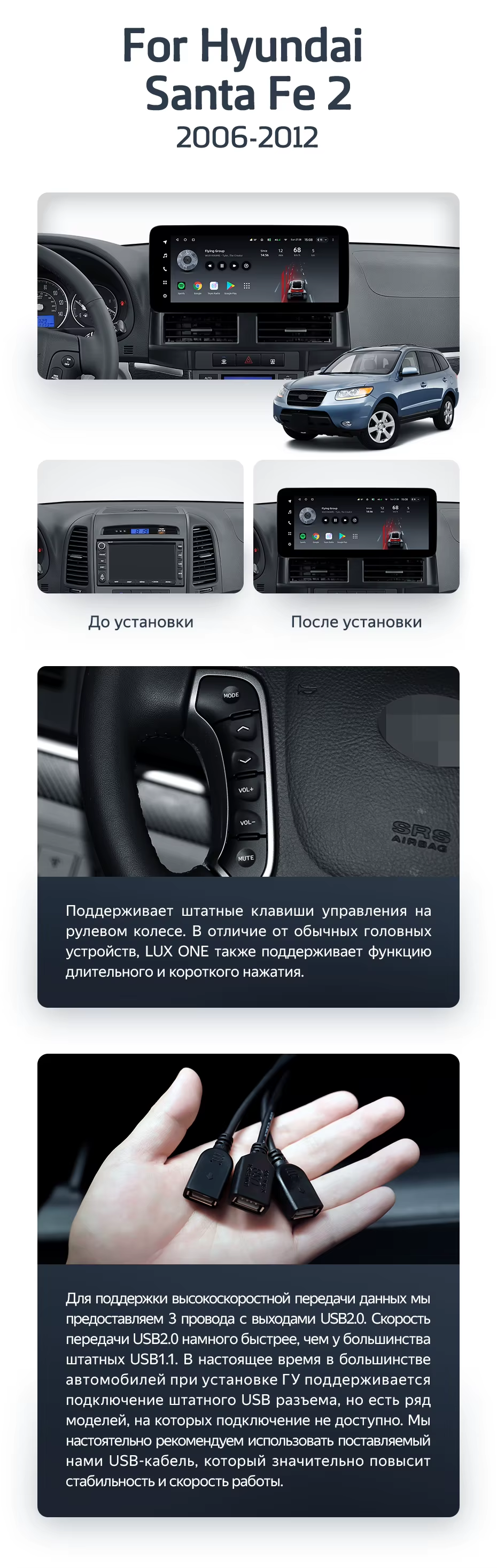 Штатная магнитола Teyes LUX ONE 4/64 Hyundai Santa Fe 2 (2006-2012) - купить всего за 46 300 руб. в интернет-магазине в Астрахани Teyes.com.ru. ✓ Самый лучший выбор мультимедиа ✓ Лучшая замена штатному ГУ ✓ Тел. +7 (800) 775-31-74
