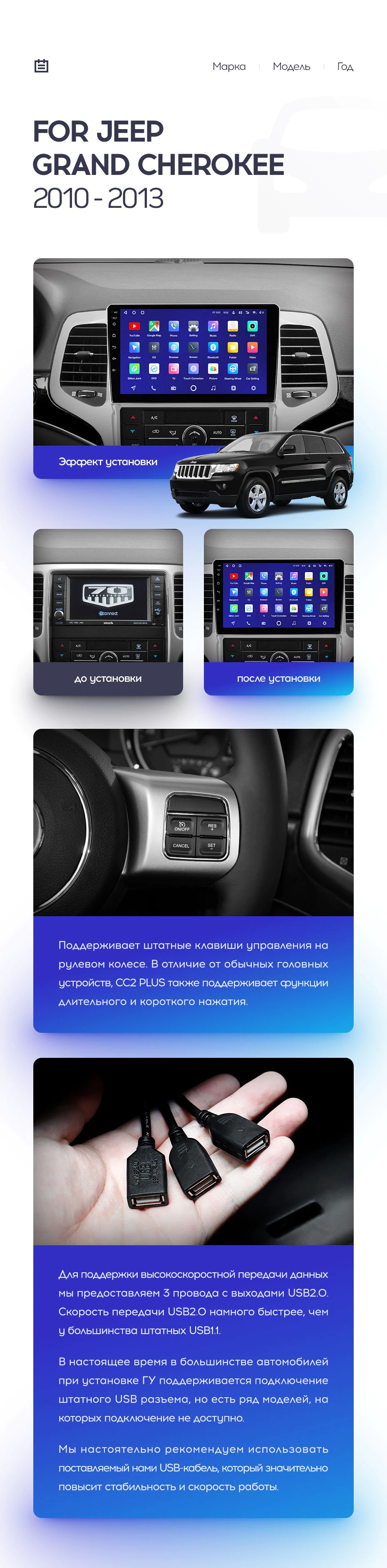 Полный комплект установки магнитолы Teyes с рамкой и проводкой можно выбрать в каталоге штатных магнитол Jeep Grand Cherokee WK2 (2010-2013).