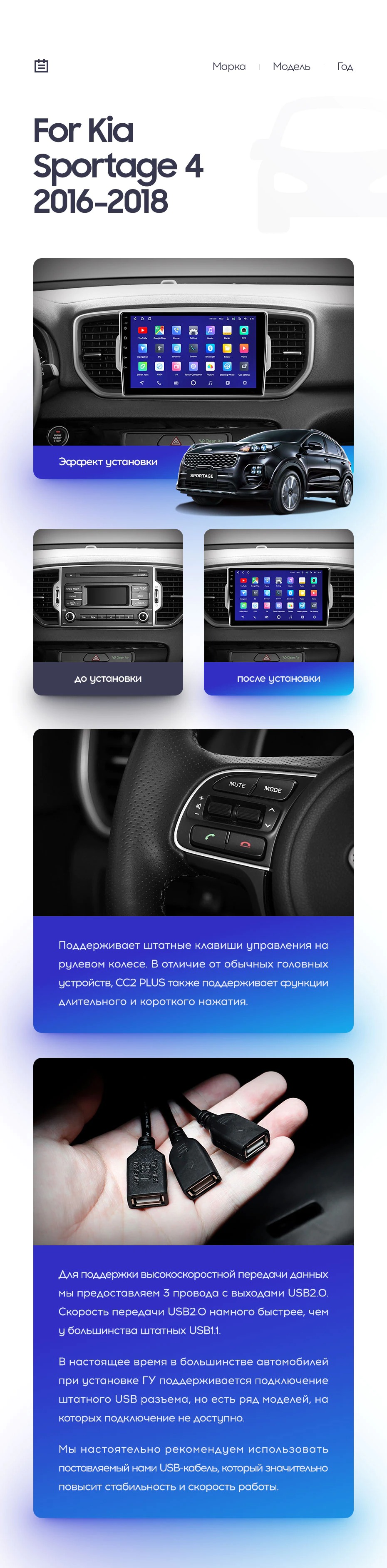 Полный комплект установки магнитолы Teyes с рамкой и проводкой можно выбрать в каталоге штатных магнитол Kia Sportage 4 QL (2016-2018).